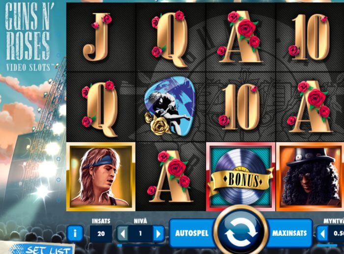 Guns N’ Roses slot från NetEnt har 5 hjul, 20 vinstlinjer och en RTP på 96,98%. Det är en väldigt underhållande slot – speciellt för alla fans av Guns N’ Roses!