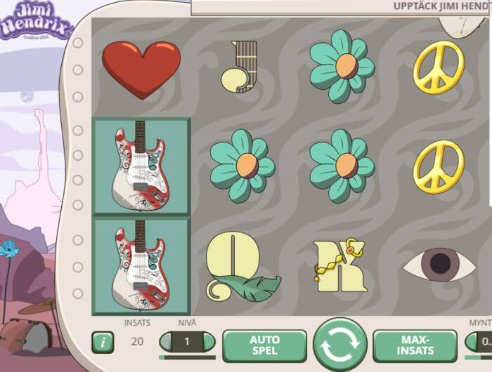Jimi Hendrix slot kommer även den från NetEnt och har 5 hjul, 20 vinstlinjer och en RTP på 96,9%.