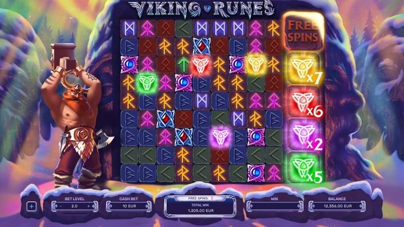 Runsymbolerna i kaskader bildar vinnande kluster som försvinner och som alltså utlöser ytterligare kaskader. När du får fem eller fler kaskader i ett enstaka snurr ger det free spins med en progressiv multiplikator som ökar när kaskaderna fortsätter. Håll utkik efter spalten till höger om spelplanen där du kan se dina free spins-symboler samt multiplikatorer samlade.