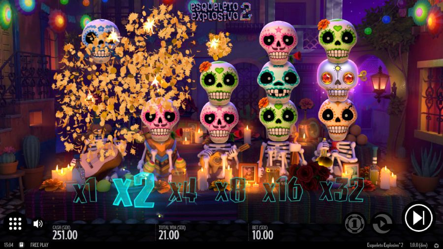 Detta är uppföljaren till succén Esqueleto Explosivo. Sloten har hämtat sin inspiration från den mexikanska högtiden Dia de Los Muertos, och rikligt utsmyckade döskallar är vad som snurrar fram över hjulen på den 5×3 stora spelplanen med sina 99 vinstlinjer. Här finns funktioner som kaskader, wilds och free spins, samt en maximal vinst på 5 000 gånger insatsen.