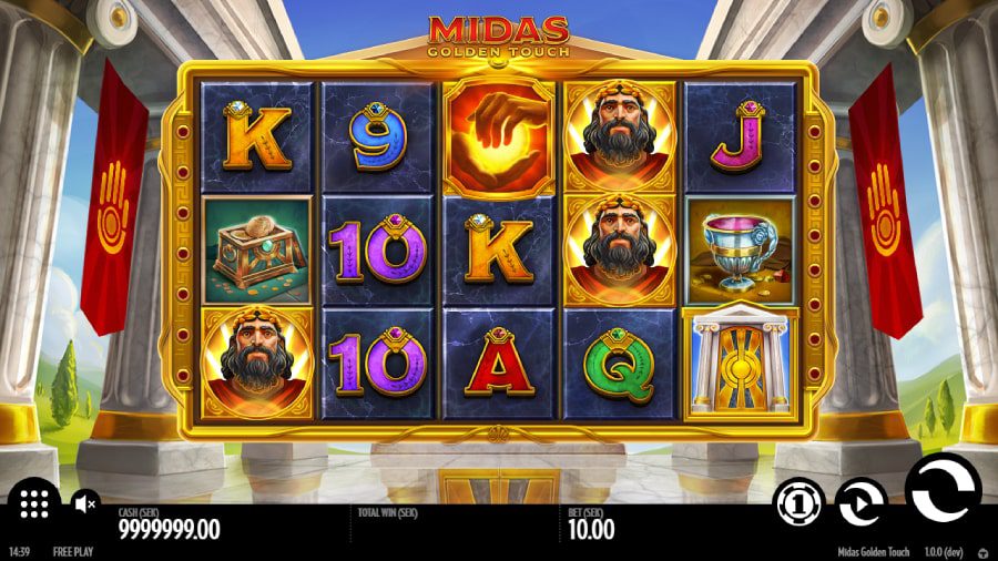 Denna slot är baserad på legenden om Kung Midas – han som förvandlade allt han rörde vid till guld. Även sin egen dotter. Denna 5×3 slot kommer med 10 vinstlinjer, bonusspel, respins, sticky wilds och en maxvinst på gyllene 10 100 gånger insatsen.